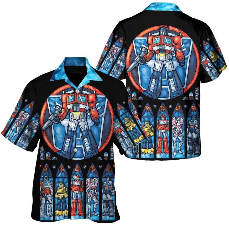 You're taking a peek at the product Transformers Hawaiian Button Down Shirt Unisex Adults For Kids belong theme Hawaiians at Printblur