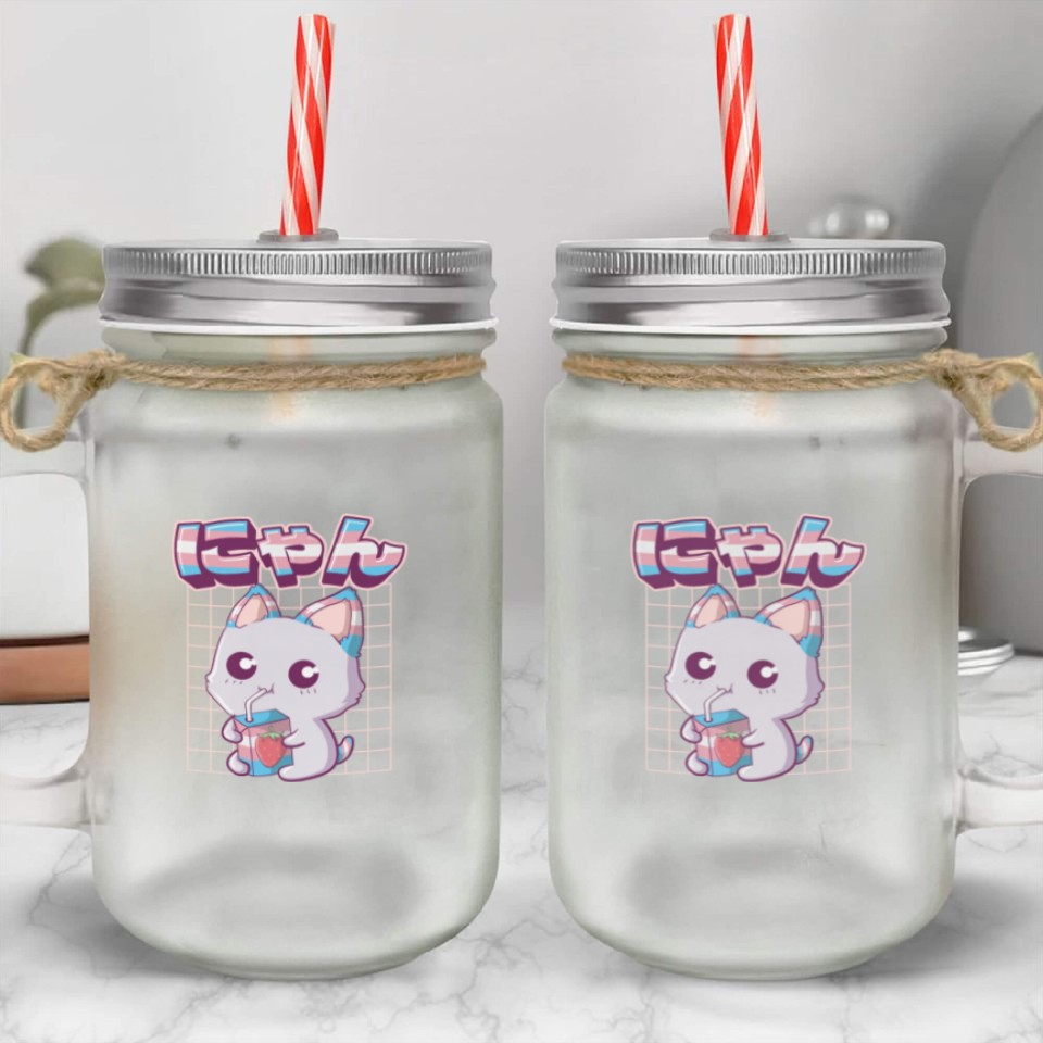 You're searching for a one-of-a-kind product Transgender Pride Kawaii Cat Strawberry Milk Trans Mason Jar Cups For belong theme Mason Jar Cups at Printblur