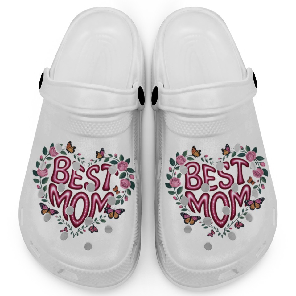 Trendy Best Mom Ever, Mother's Day Heart Floral Clogs