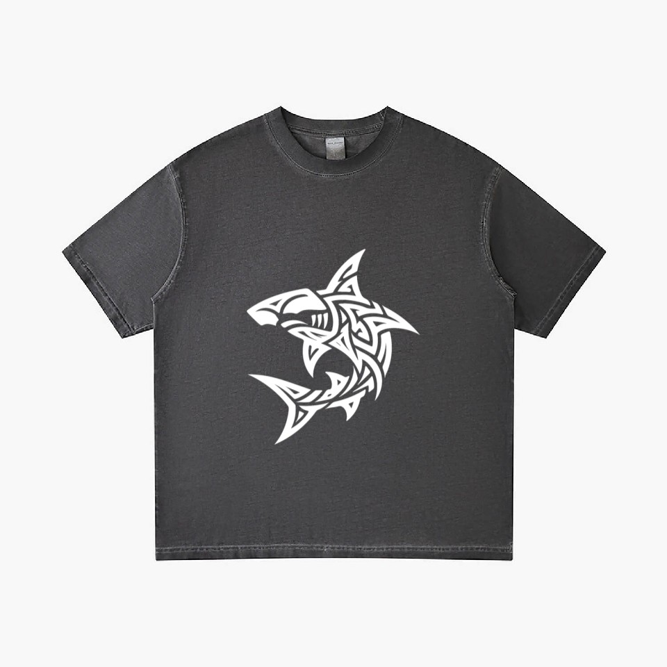 The product unique design you searched for is Tribal Hammerhead Shark Style Diver Fan Tattoo Gradient T Shirts For Men Washed Black belong theme Gradient T-Shirts at Printblur