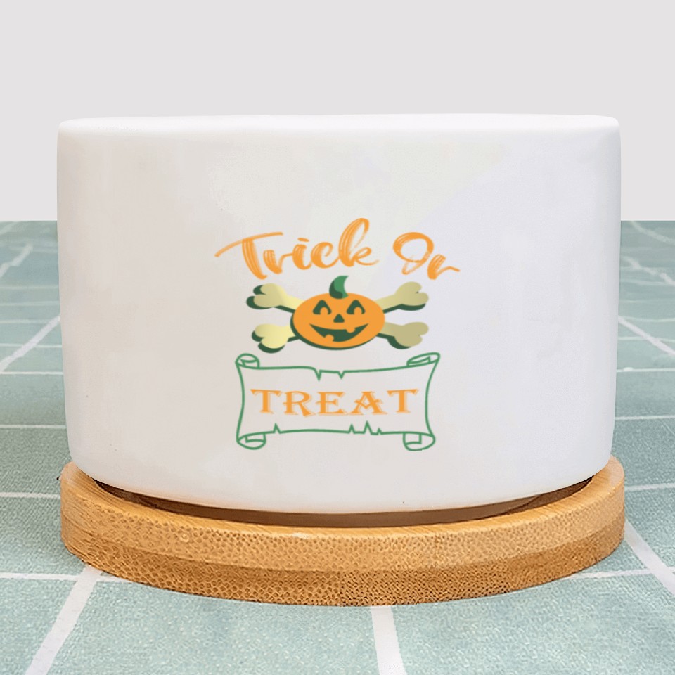 The item hot trend you're looking at is Trick or treat crossbones Halloween pumpkin Plant Pots For WHITE belong theme Plant Pots at Printblur
