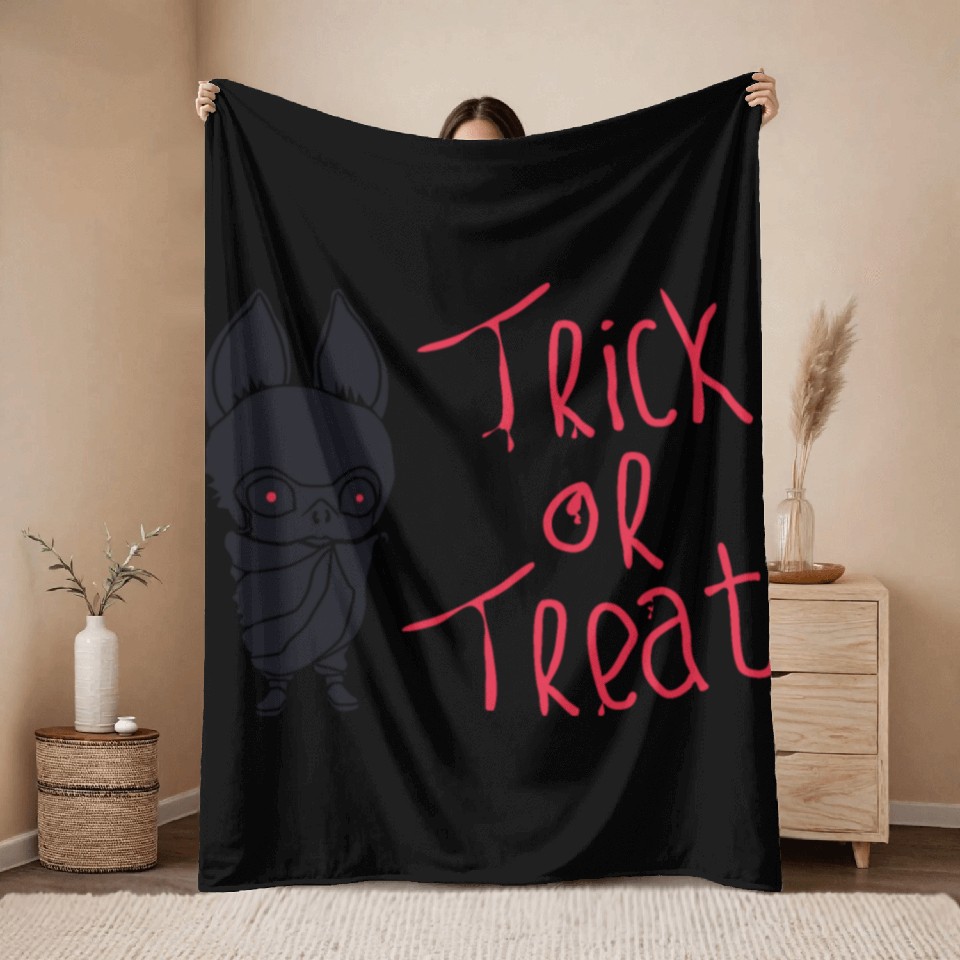 The item hot trend you're looking at is trick or treat kids in cute bat costumes Throw Blankets For Black belong theme Throw Blankets at Printblur