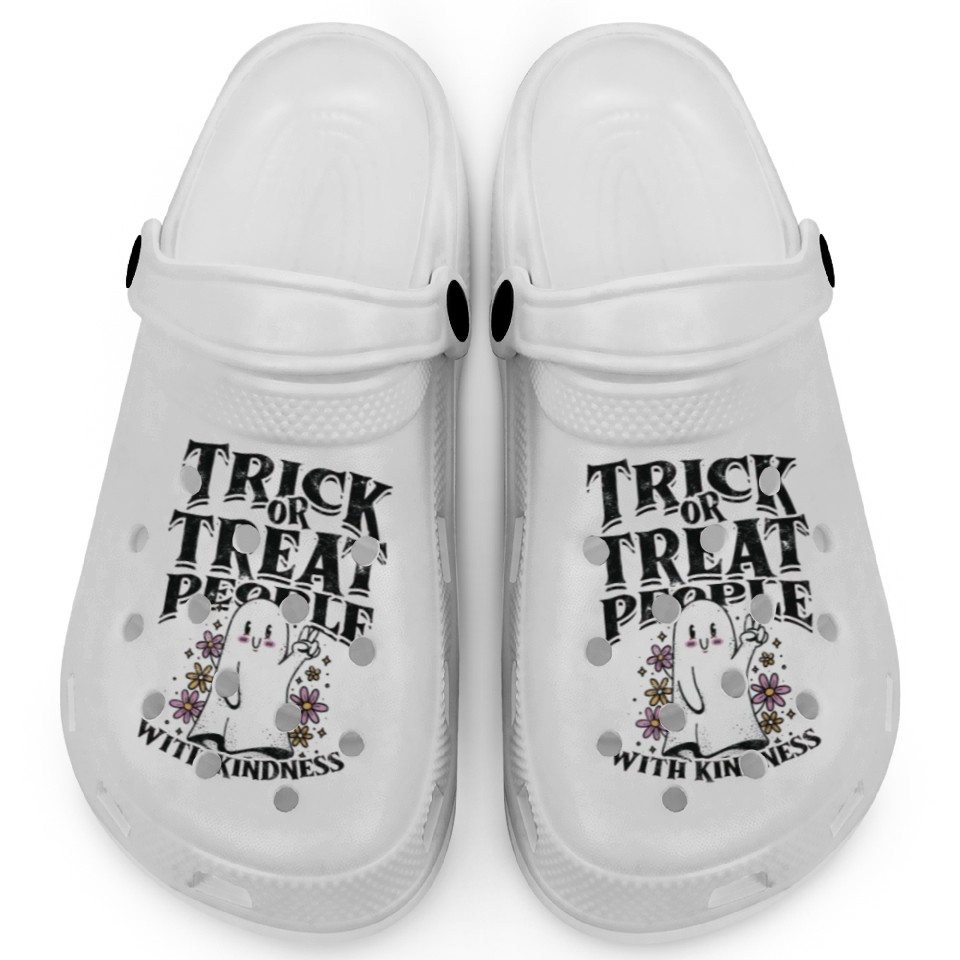 You're looking at the eye-catching product Trick or treat people with kindness - trick or Clogs For Kids WHITE belong theme Clogs at Printblur
