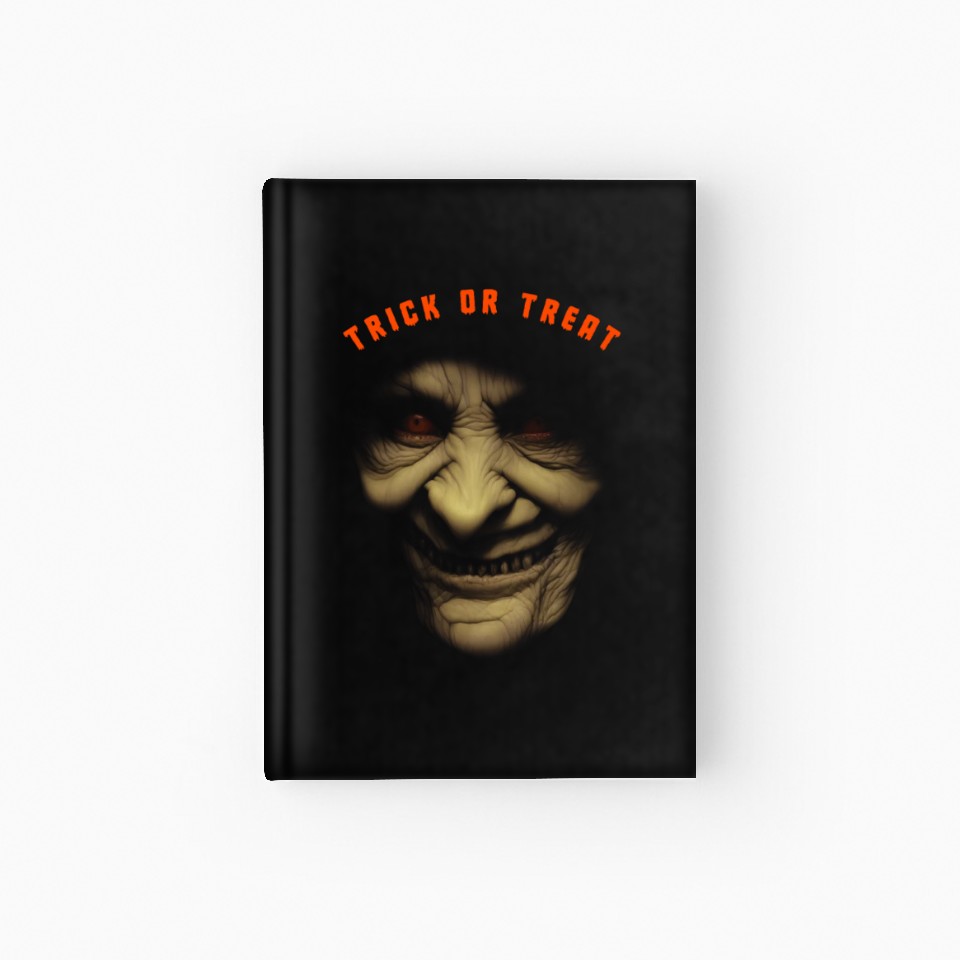 You're looking at the eye-catching product Trick Or Treat - Scary Halloween Old Witch Face Hardcover Journal For Black belong theme Hardcover Journal at Printblur