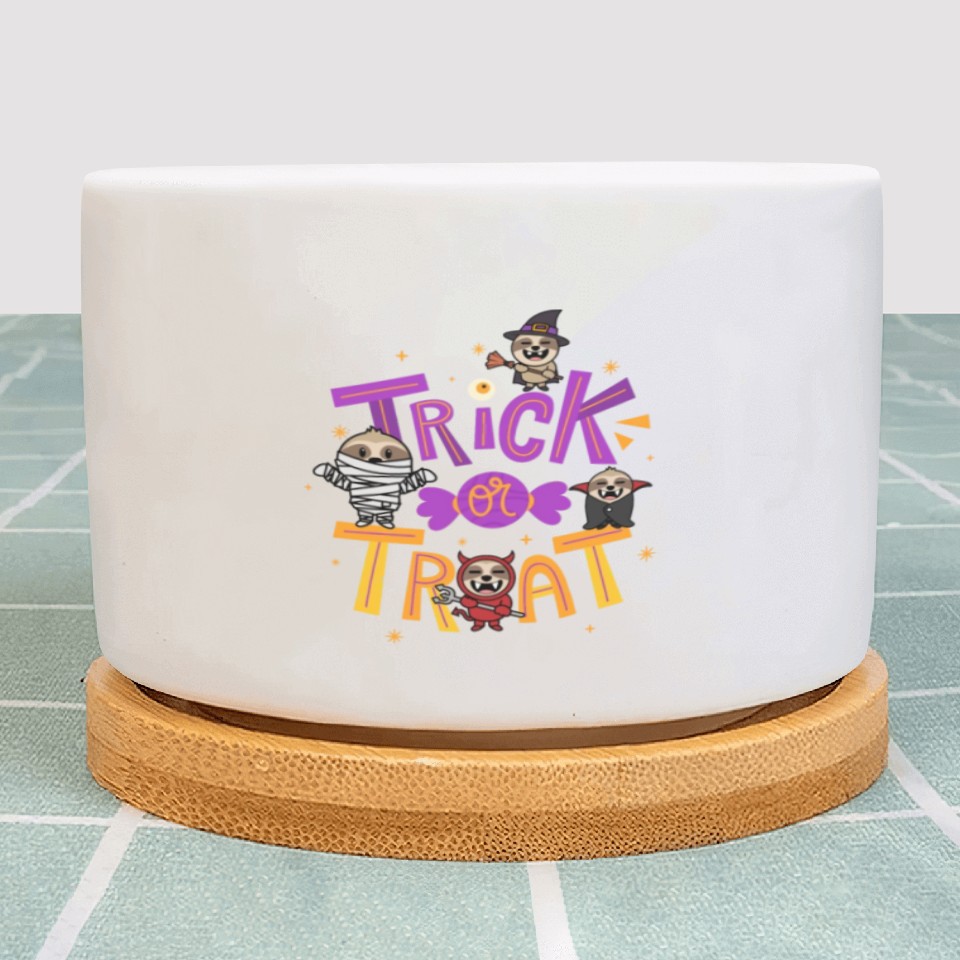Shop for attractive Trick Or Treat Witch Mummy Halloween Plant Pots or see more Plant Pots products on https://printblur.com right now!