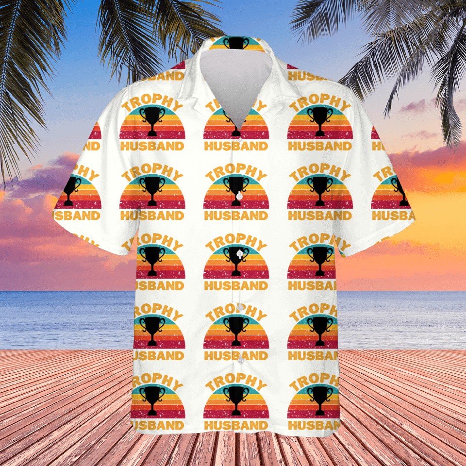 Own fascinating Trophy Husband | Funny Dad Joke Humor Hawaiians or see more Hawaiians products now from Printblur shop to enjoy your shopping time!
