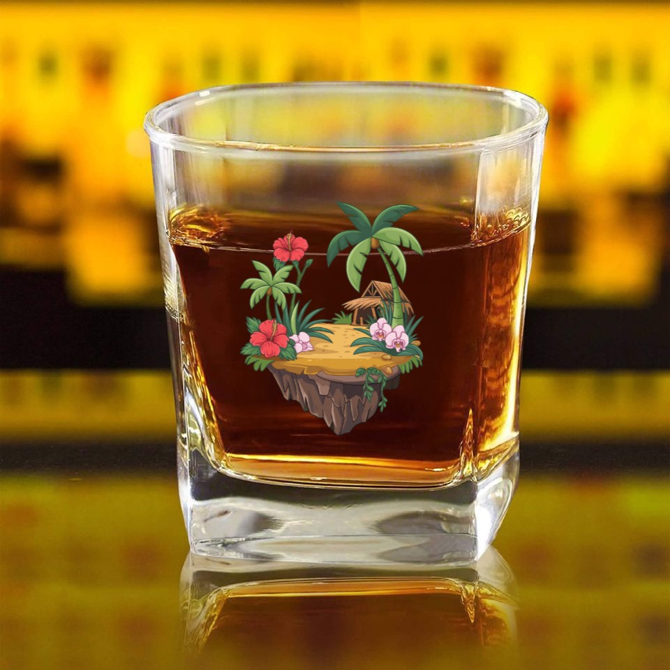 You are seeing a unique and impressive product Tropical Island Hut Hibiscus and Orchids Square Whiskey Glasses For belong theme Square Whiskey Glasses at Printblur