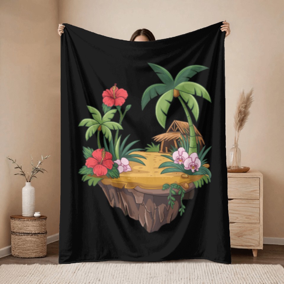 Own fascinating Tropical Island Hut Hibiscus and Orchids Throw Blankets or see more Throw Blankets products now from Printblur shop to enjoy your shopping time!
