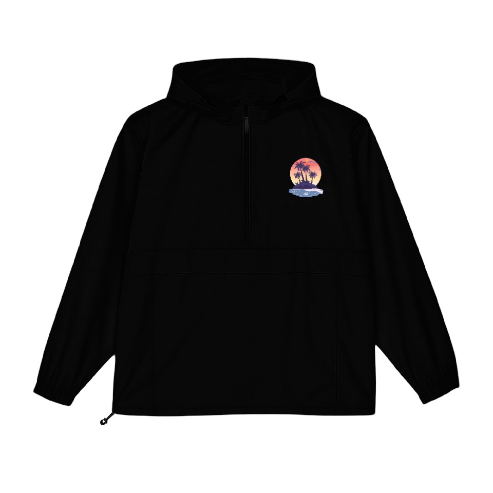You are seeing a unique and impressive product Tropical Island with Palm Trees nature Packable Anorak Jackets For Unisex Black belong theme Packable Anorak Jackets at Printblur