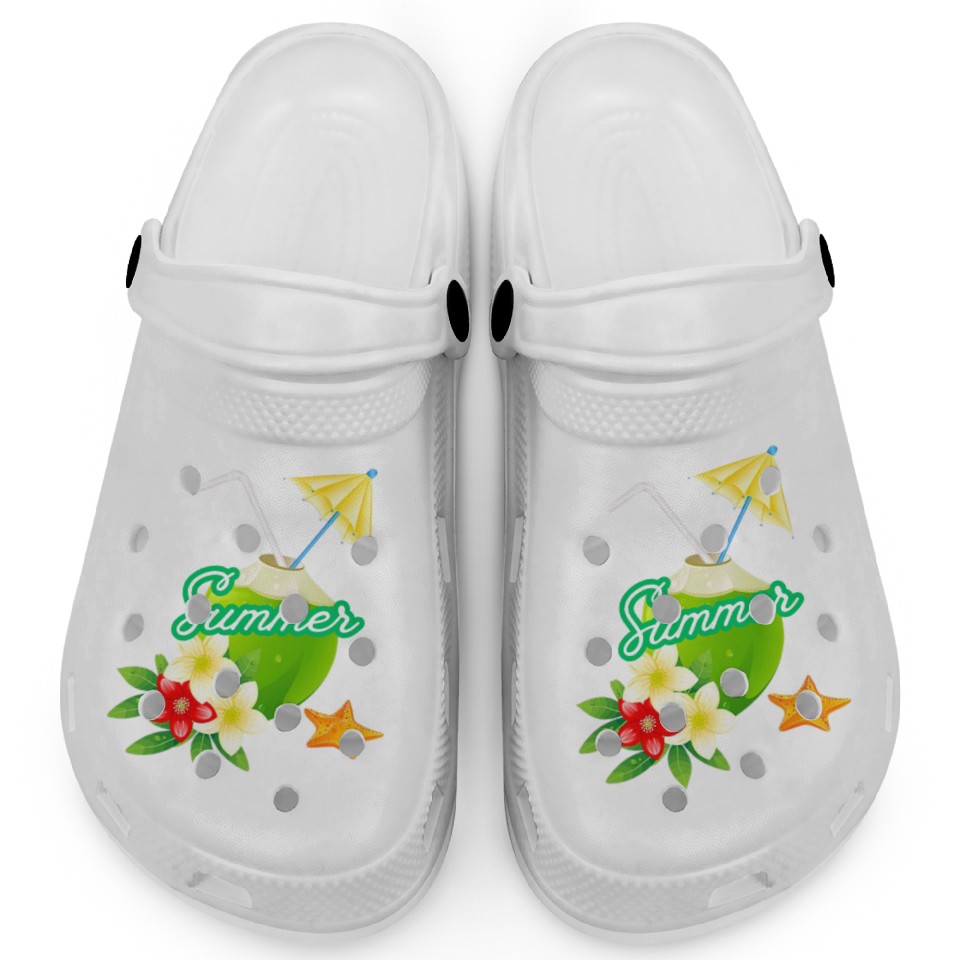 You're searching for a one-of-a-kind product Tropical Summer Coconut with Flowers Clogs For Kids WHITE belong theme Clogs at Printblur