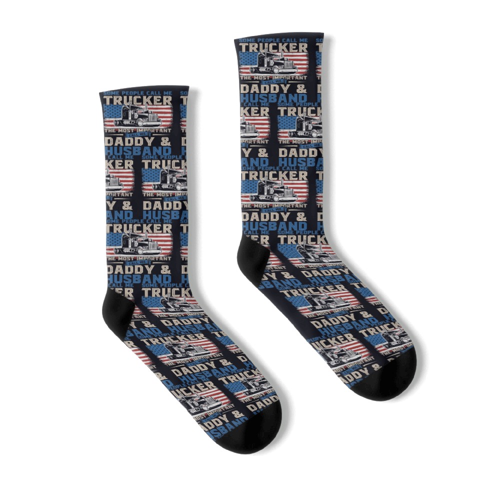 You are shopping for a stunning and trendy product Truck Driver Trucker Daddy Husband US Flag Socks For Black belong theme Socks at Printblur