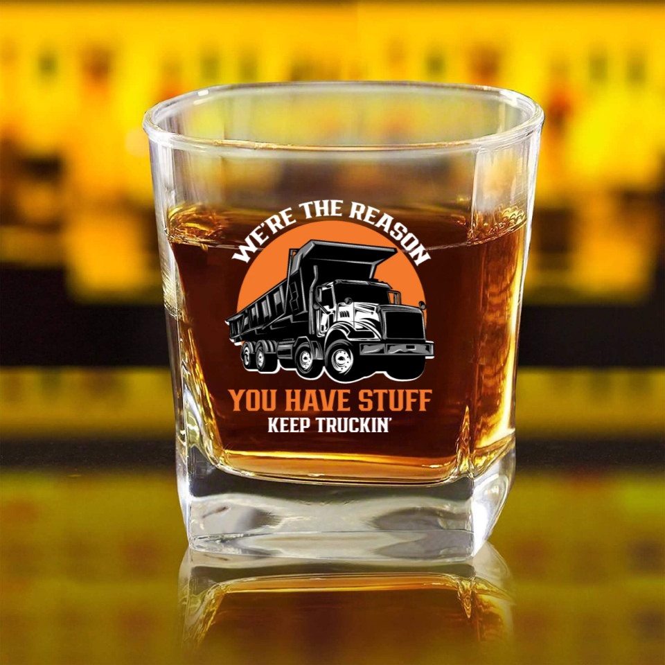 Buy eye-catching Truck Driver - We're the Reason You Have Stuff Kee Square Whiskey Glasses or see more Square Whiskey Glasses products at Printblur shop now to explore many surprises from our shop!