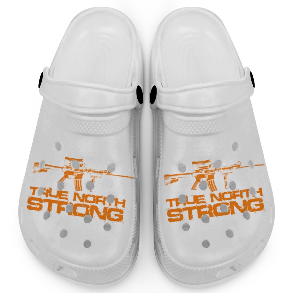 You're searching for a one-of-a-kind product True North Strong Canadian Military Clogs For Kids WHITE belong theme Clogs at Printblur