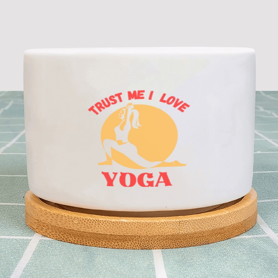 You're taking a peek at the product Trust me I love yoga Plant Pots For WHITE belong theme Plant Pots at Printblur