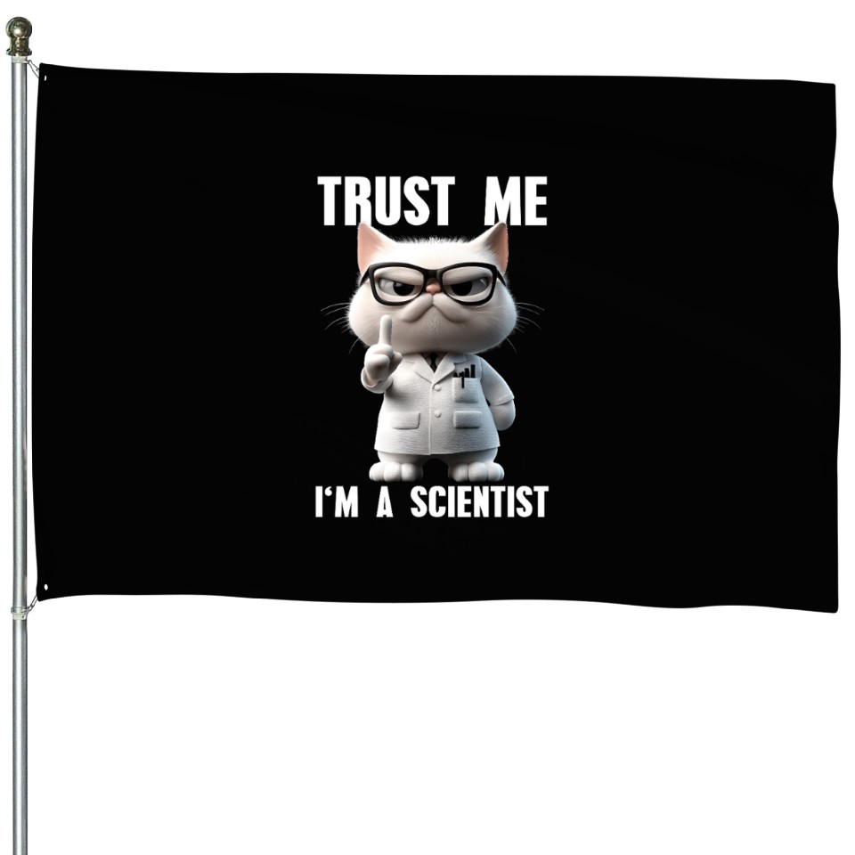 The product unique design you searched for is Trust Me I'm A Scientist Science Cat Meme House Flags For Black belong theme House Flags at Printblur