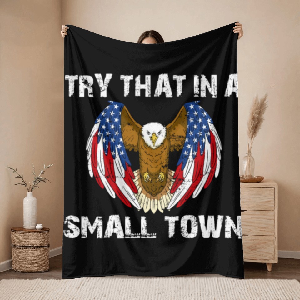 Shop for attractive Try That In A Small Town American Flag Eagle Throw Blankets or see more Throw Blankets products on https://printblur.com right now!