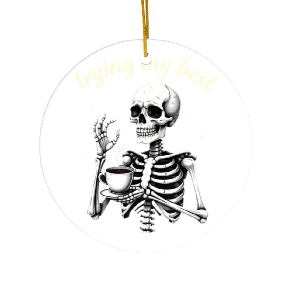 You are shopping for a stunning and trendy product Trying My Best Funny Skeleton Coffee Halloween Ceramic Ornaments For WHITE belong theme Ceramic Ornaments at Printblur