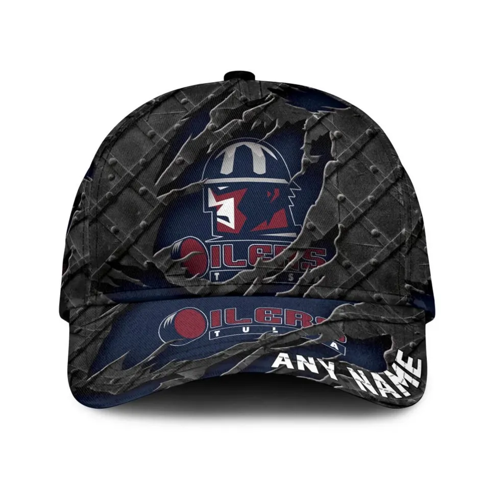 Shop for attractive Tulsa Oilers Personalized Name Black Metal Design Classic Cap or see more Baseball Caps AOP products on https://printblur.com right now!