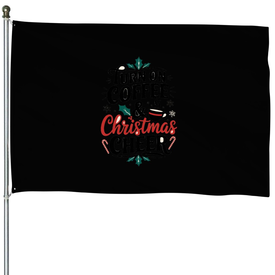Shop for impressive Turn On Coffee and Christmas Cheer - Holiday House Flags or see more House Flags products right now on Printblur to enjoy your happiness!