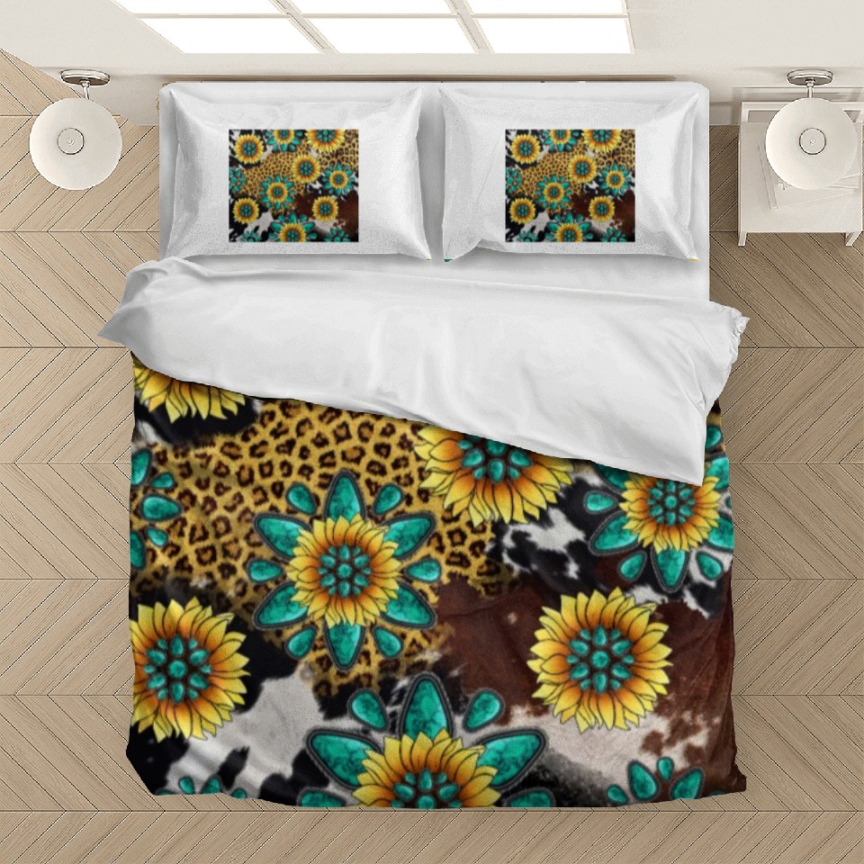 Shop for impressive Turquoise Gemstone Sunflowers Leopard Cowhide Bedding Sets or see more Bedding Sets products right now on Printblur to enjoy your happiness!