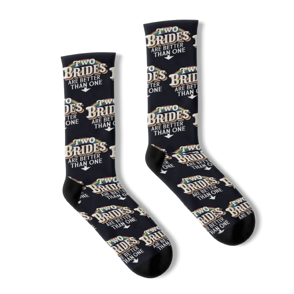 Buy stunning Two Brides Are Better Than One Lesbian Wedding Socks or see more Socks products at Printblur right now to receive many amazing discounts!