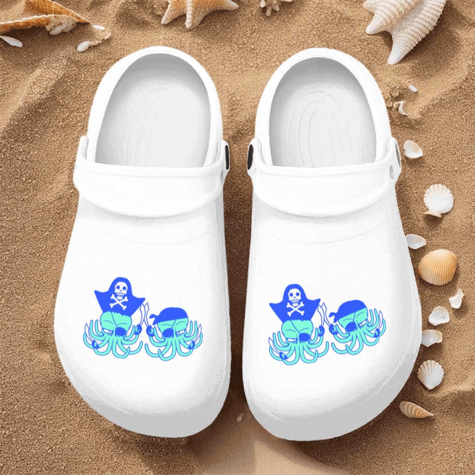 You are viewing an exclusive and elegant product Two octopus pirate sailing crew captain privateer Nurse Clogs For Men WHITE belong theme Nurse Clogs at Printblur