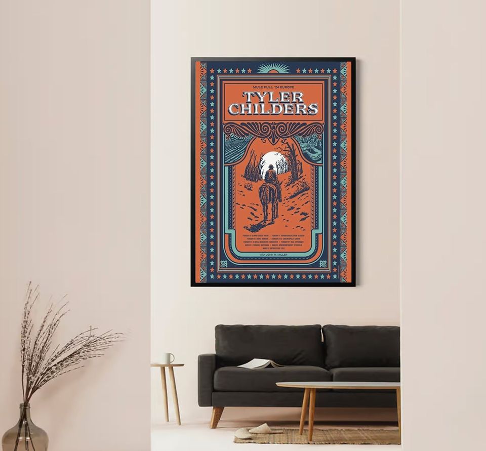 Shop for attractive Tyler Childers Mule Pull 2024 Europe Tour Poster or see more Premium Matte Vertical Posters products right now on https://printblur.com!
