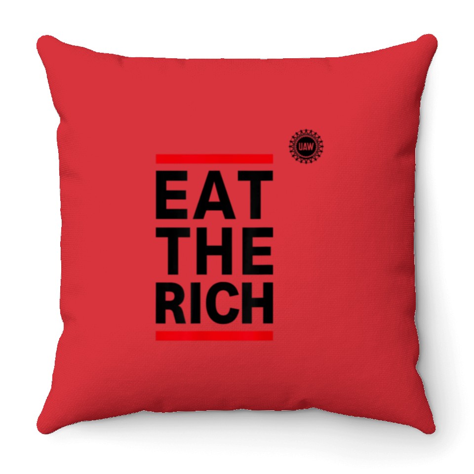 Shop for attractive UAW Eat The Rich Throw Pillows or see more Throw Pillows products on https://printblur.com right now!