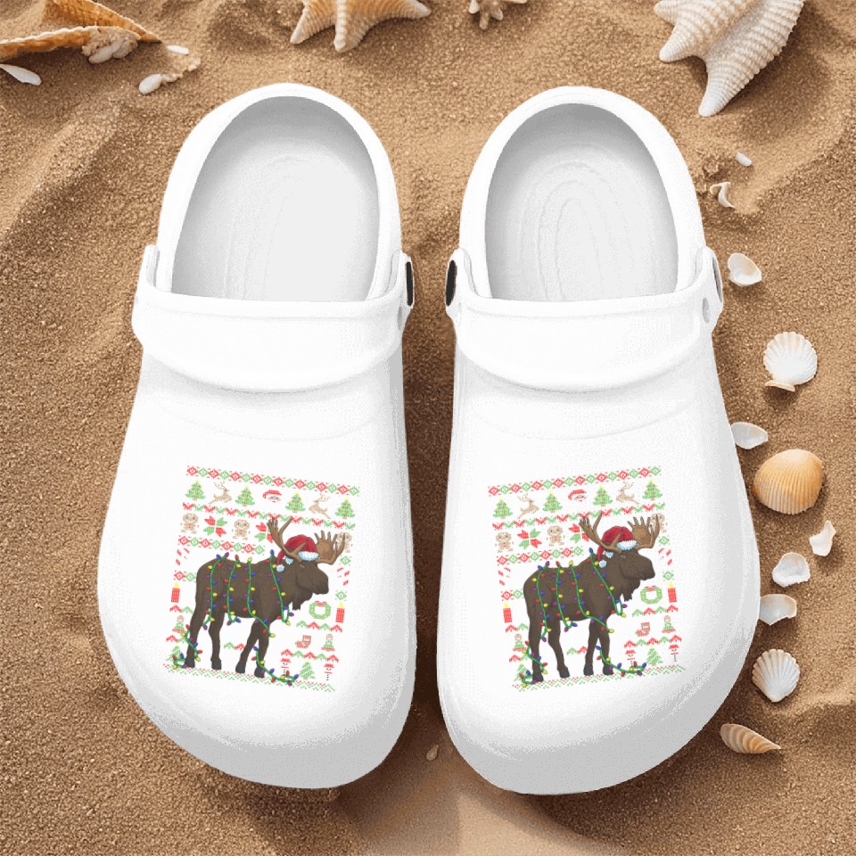 Ugly Christmas Moose Sweden Nurse Clogs