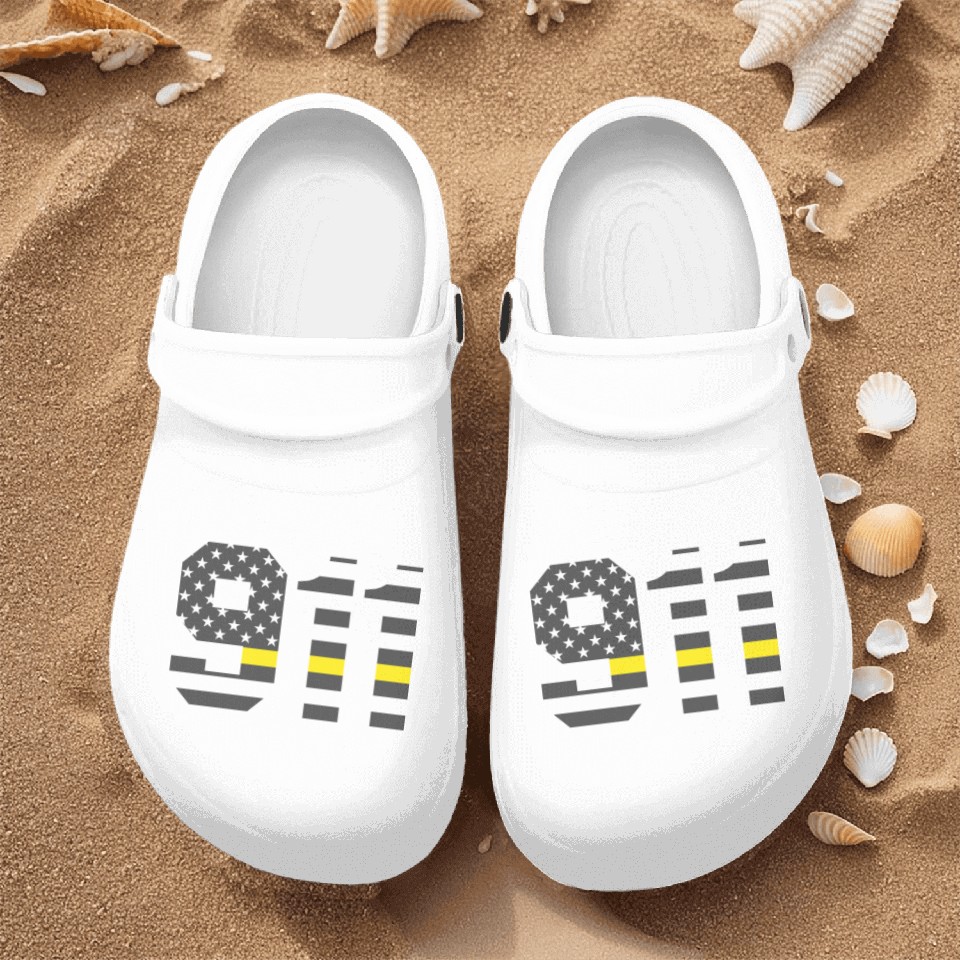You're taking a peek at the product 911 Is My Work Number Dispatcher Funny Dispatch911 Nurse Clogs For Men WHITE belong theme Nurse Clogs at Printblur