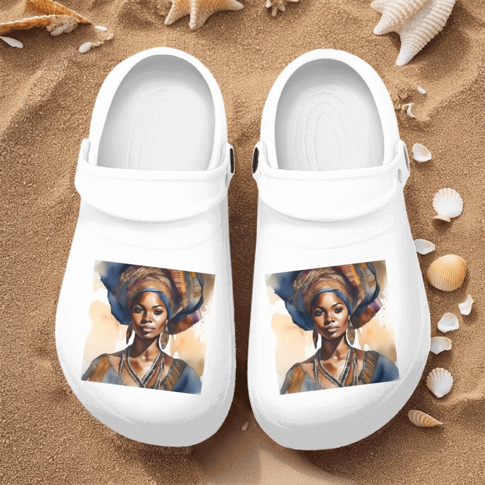 You are shopping for a stunning and trendy product African Woman Portrait E Nurse Clogs For Men WHITE belong theme Nurse Clogs at Printblur