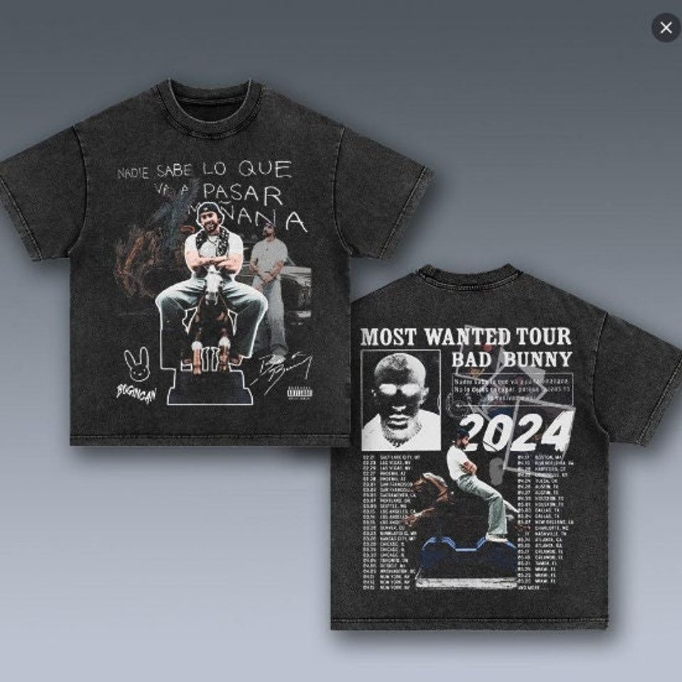 Buy stunning Bad Bunny Most Wanted Tour 2024 Shirt, Bad Bunny Shirt, Bad Bunny Merch or see more Double Sided T-Shirts products at Printblur right now to receive many amazing discounts!