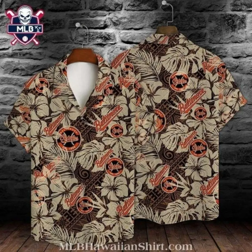 Shop for attractive Baltimore Baseball Team Orioless Classic Beige Floral Orioles Emblem Hawaiian Sh or see more Hawaiian Shirts products on https://printblur.com right now!