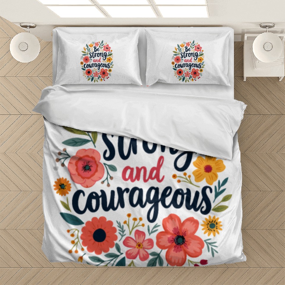 Shop for attractive Be Strong and Courageous Christian Quote Flower Bedding Sets or see more Bedding Sets products on https://printblur.com right now!