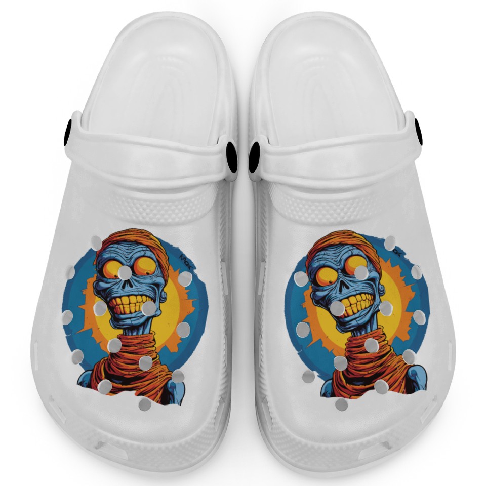 You are contemplating one of the best-selling products Blue and Funny Cartoon Skeleton Skull Mummy Clogs For Kids WHITE belong theme Clogs at Printblur