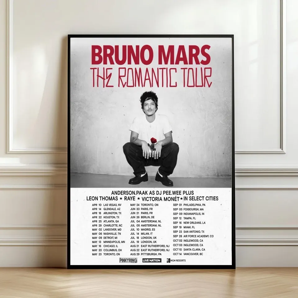 Buy eye-catching Bruno Mars The Romantic Tour 2026 Poster Wall Art Music Print or see more Premium Matte Vertical Posters products at Printblur shop now to explore many surprises from our shop!