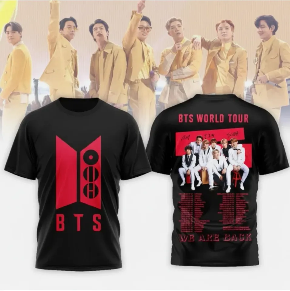 Shop for attractive BTS We Are Back World Tour 2026 Black & White T-Shirt 3D or see more 3D T Shirts products on https://printblur.com right now!