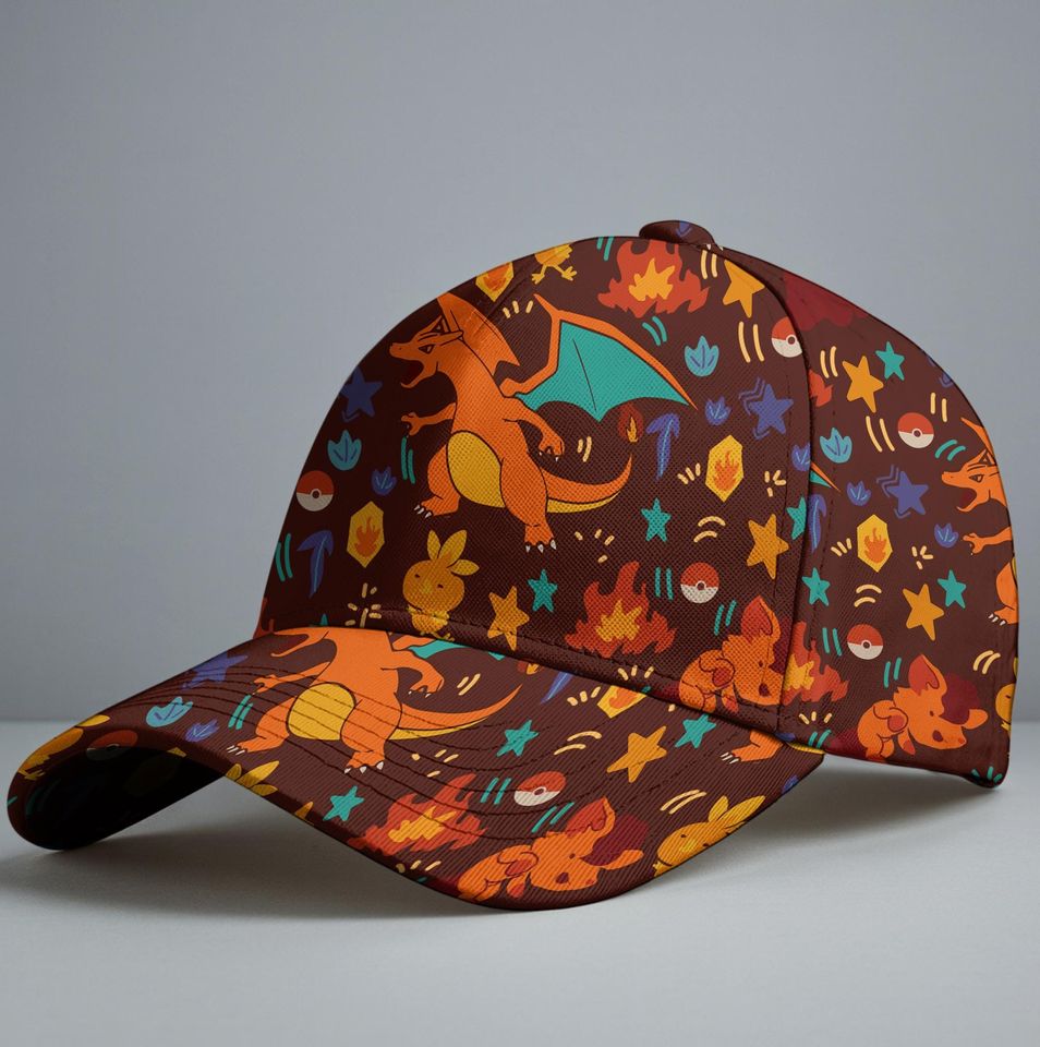 You're searching for a one-of-a-kind product Charizard Baseball Cap, Fire Dragon Print Hat, Fire Charmander Cap, Cute Summer Accessory, Outdoor Casual Style, Charizard Hat Gift For Unisex belong theme Baseball Caps AOP at Printblur