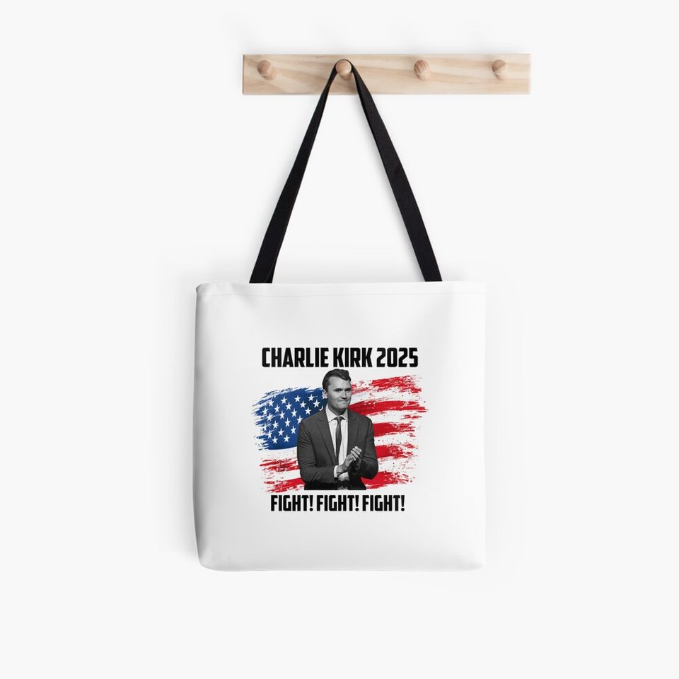 Buy eye-catching Charlie Kirk Fight Fight Fight Tote Bag or see more Tote Bags (AOP) products at Printblur shop now to explore many surprises from our shop!