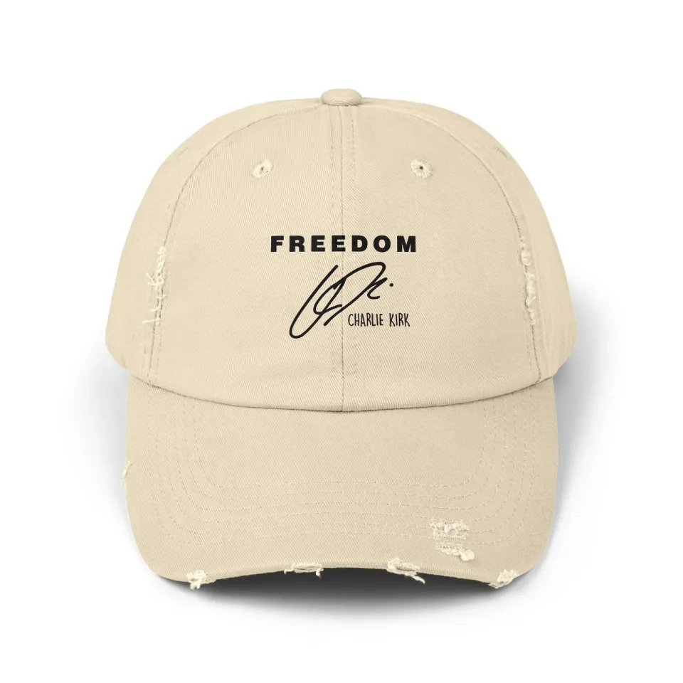 Shop for attractive Charlie Kirk Hat – Political Distressed Cap or see more Unisex Distressed Caps products on https://printblur.com right now!