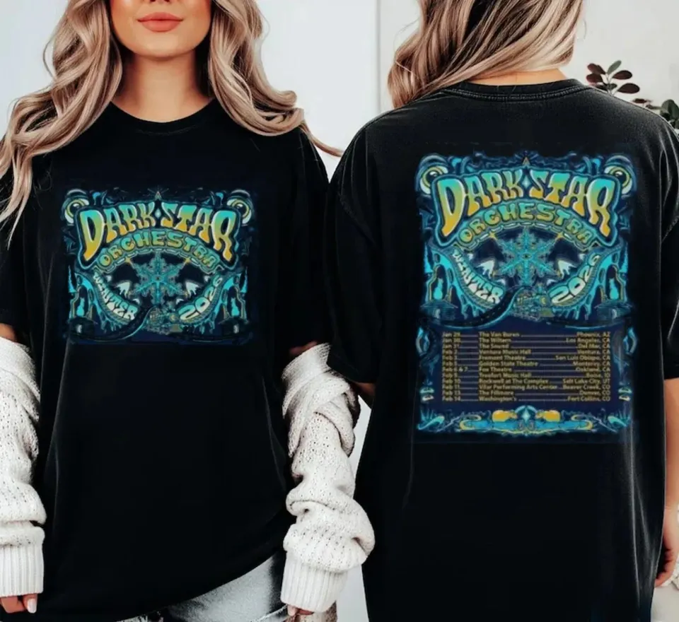 Own fascinating Dark Star Orchestra Winter Tour 2026 Two Sided Schedule Inspired T-Shirt or see more Double Sided T-Shirts products now from Printblur shop to enjoy your shopping time!