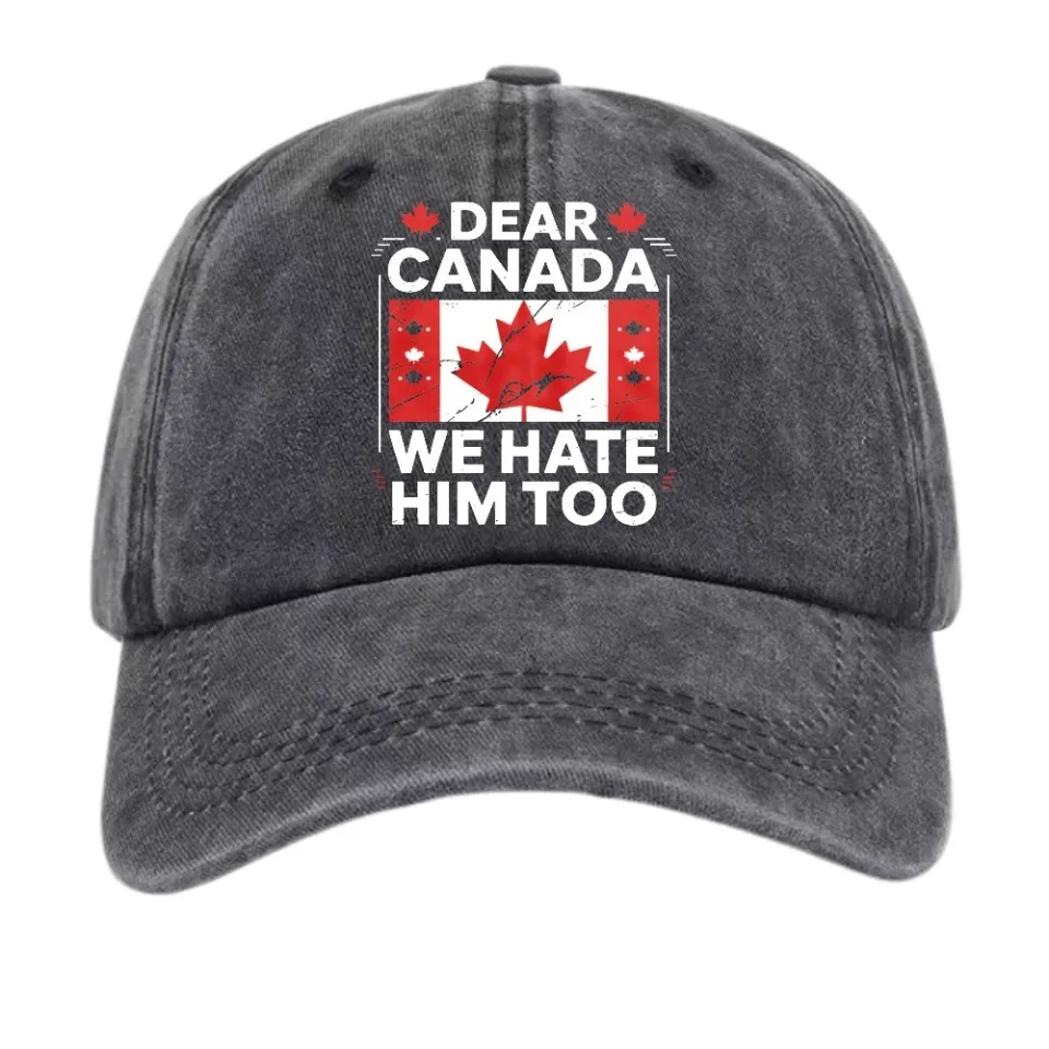 The item hot trend you're looking at is Dear Canada We Hate Him Too Funny Canadian Flag Baseball Cap Dad Hat For Unisex Black belong theme Washed Denim Baseball Caps at Printblur