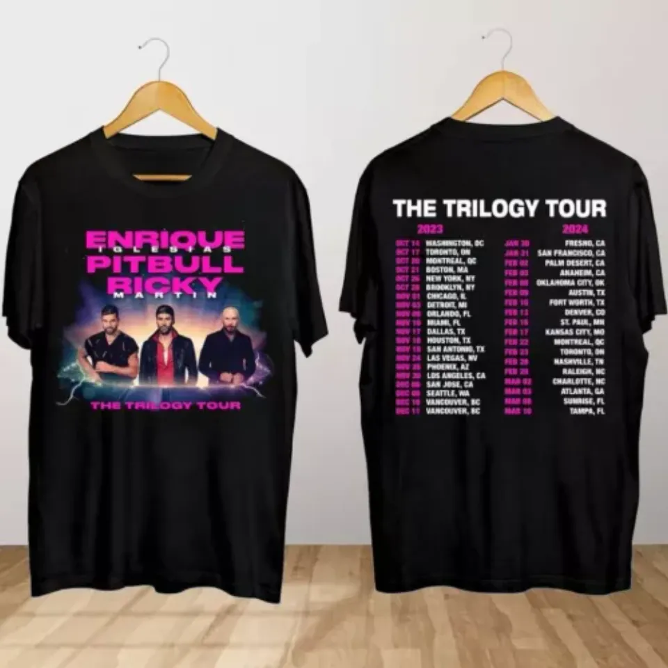 You're looking at the eye-catching product Enrique IglesiasxPitbullxRicky Martin The Trilogy Tour 2024 Shirt For Men Black belong theme Double Sided T-Shirts at Printblur
