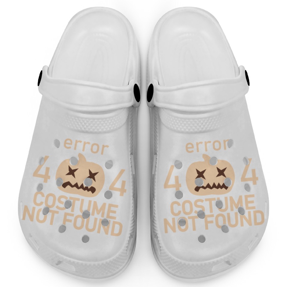 You're searching for a one-of-a-kind product Error 404 Costume Not Found Low Budget Halloween P Clogs For Kids WHITE belong theme Clogs at Printblur