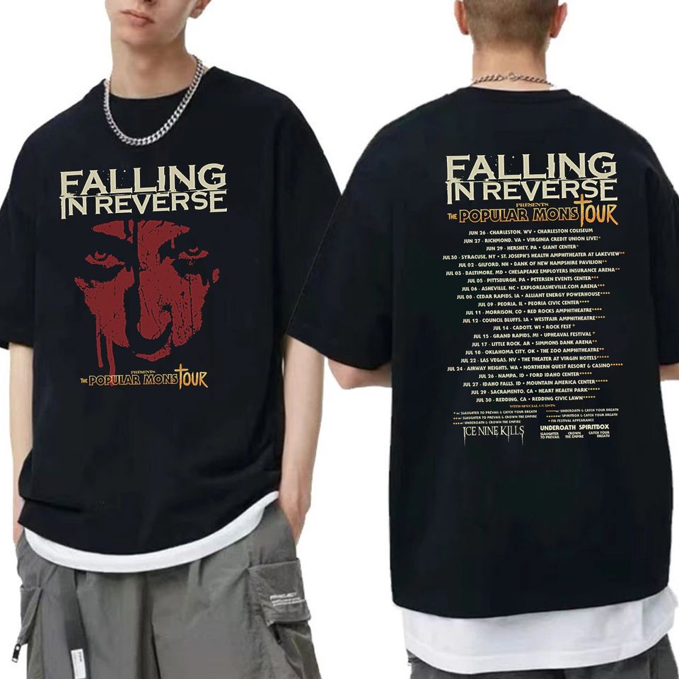 You are contemplating one of the best-selling products Falling In Reverse The Popular Mons Tour 2023 Shirt, Falling In Reverse Rock Band Fan Shirt For Men Black belong theme Double Sided T-Shirts at Printblur