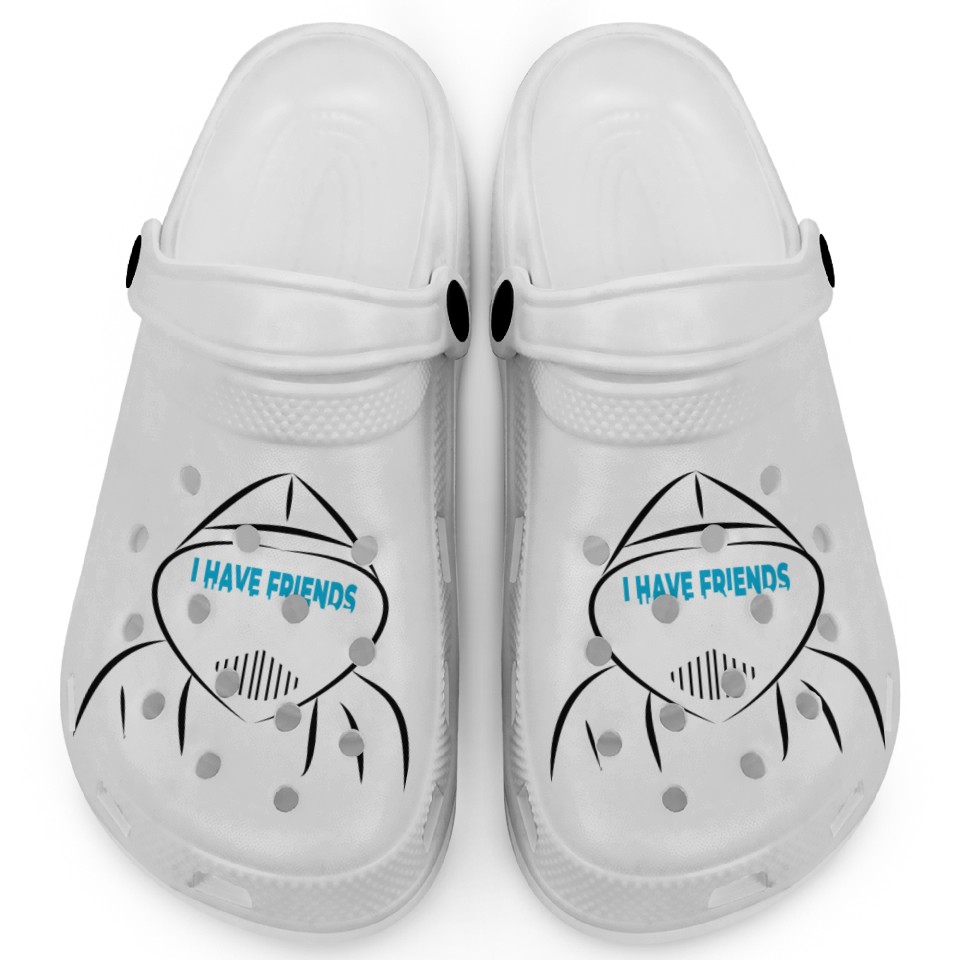 You're looking at the eye-catching product Funny Friends Design For Friendship Day Clogs For Kids WHITE belong theme Clogs at Printblur