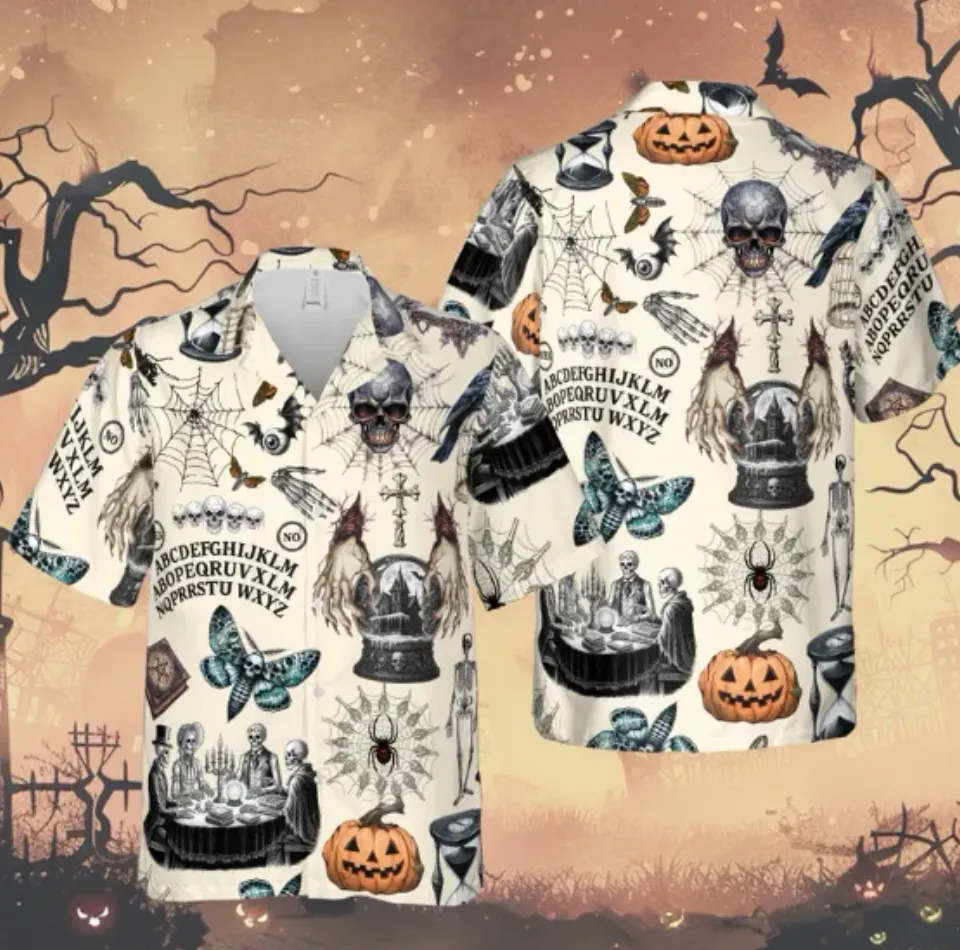 Own fascinating Goth Halloween Hawaiian Shirt, Spooky Ouija, Gothic Halloween Button Shirt or see more Hawaiians products now from Printblur shop to enjoy your shopping time!