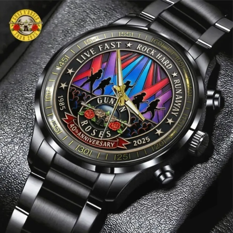 Own fascinating Guns N’ Roses Black Stainless Steel Watch Tour 2025 or see more Calendar Steel Band Watch products now from Printblur shop to enjoy your shopping time!