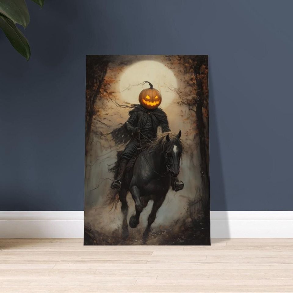 Shop for attractive Headless Horseman Pumpkin Rider Poster | Gothic Halloween Decor or see more Premium Matte Vertical Posters products on https://printblur.com right now!