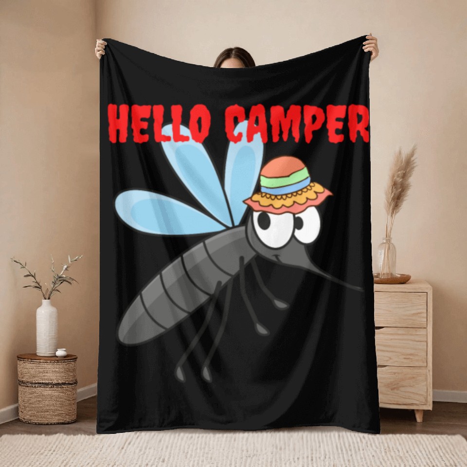 Buy stunning Hello camper | Cute mosquito with a colorful hat Throw Blankets or see more Throw Blankets products at Printblur right now to receive many amazing discounts!
